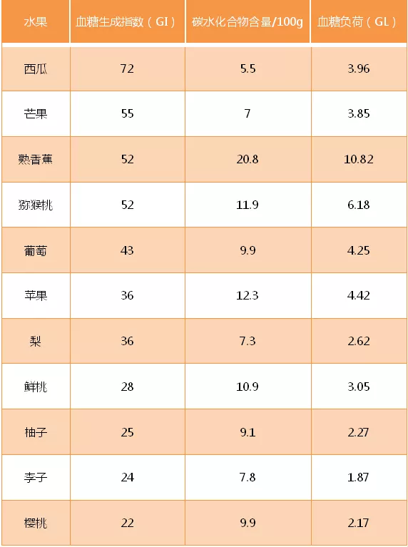 好医友为大家列举了常见水果的血糖生成指数(GI)和血糖负荷(GL):