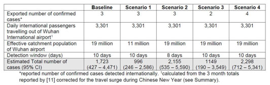 而另一方面,世卫组织传染病建模合作中心、英国帝国理工学院MRC全球传染病分析中心近日公布了一篇报告(尚未在学术期刊正式发表),通过海外通报的感染者数量,结合疾病模型分析,推算出截至1月12日武汉市感染者的数量在427人到4471人之间,可能为1723人,远远高于目前的确诊人数。这是如何算出来的呢?