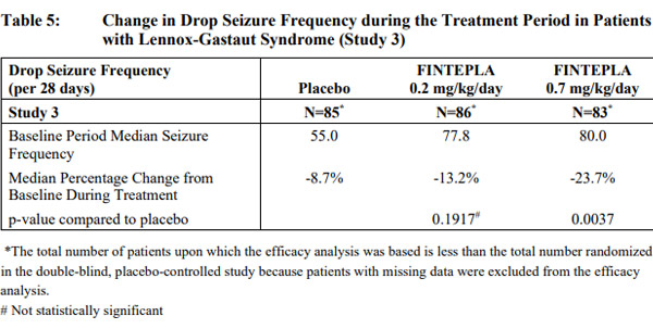 · 与安慰剂组相比,0.7 mg/kg剂量水平的Fintepla显著降低了患者跌倒性癫痫发作的频率。