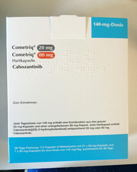 Cometriq因为意向治疗罕见病或情况还获得孤儿产品指定。Cometriq是激酶抑制剂阻断涉及髓样癌细胞的发育和生长的异常激酶蛋白。在服用Cometriq前至少2小时和后1小时患者不应进食。在一项涉及330例有甲状腺髓样癌患者临床研究确定Cometriq的安全性和有效性。用Cometriq治疗增加无癌进展生存患者生存时间长度(无进展生存) 而,有些患者,肿瘤大小减小(缓解率)。被给予Cometriq患者无肿瘤生长生存平均11.2个月与之比较接受糖丸(安慰剂)患者平均4个月。结果还显示用Cometriq治疗患者27%肿瘤大小减小平均持续接近15个月,而who 接受安慰剂患者未见减小。用Cometriq治疗不延长 患者生命。